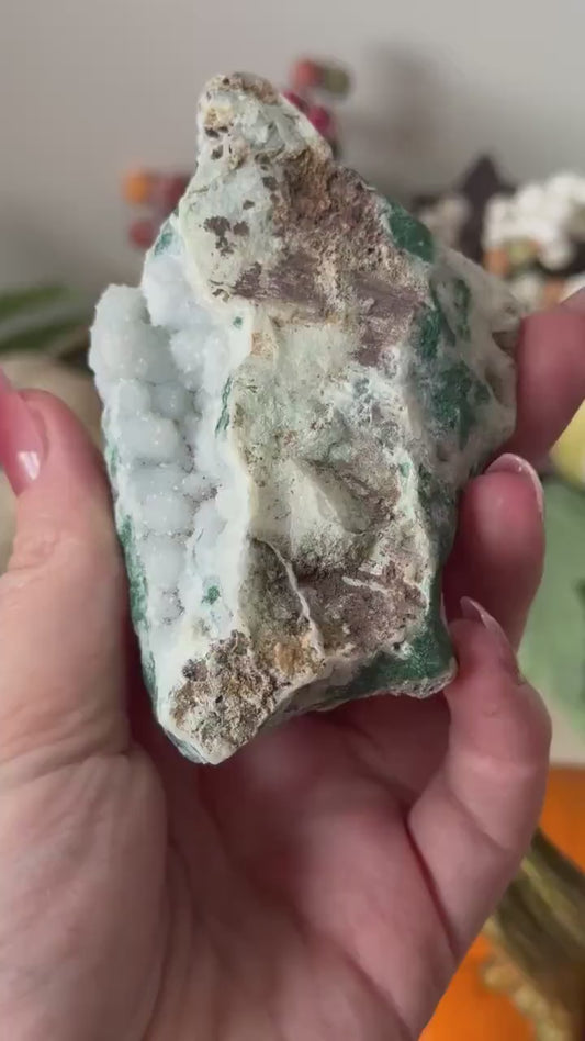 Gorgeous Malachite with Druzy Chalcedony & Quartz from Congo | Malachite Chalcedony Quartz