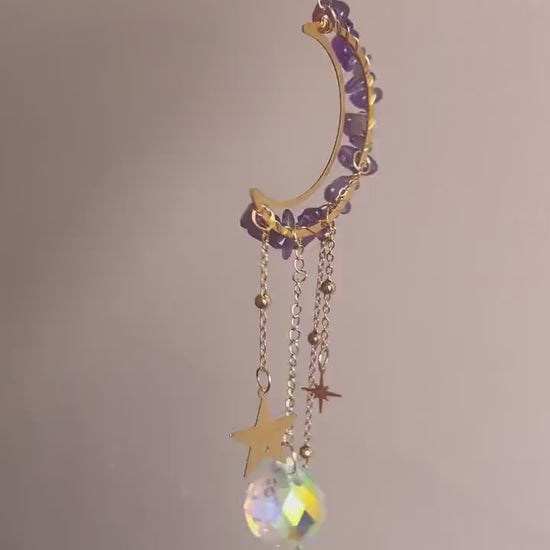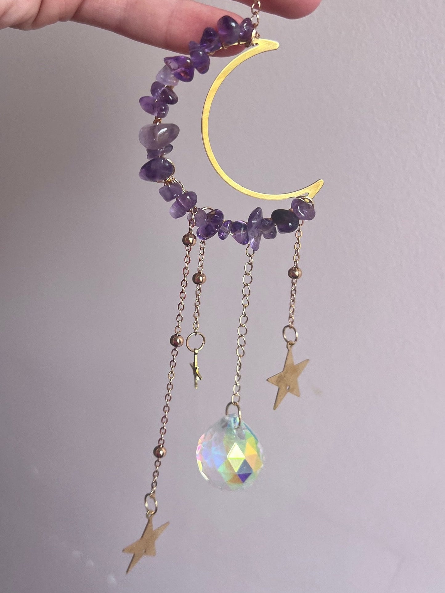 Listing is for 1 Amethyst sun catcher made with real Amethyst chips to promote feelings of peace, tranquility, to ease sleep difficulties and to increase positive dreams while dispelling negative ones ✨