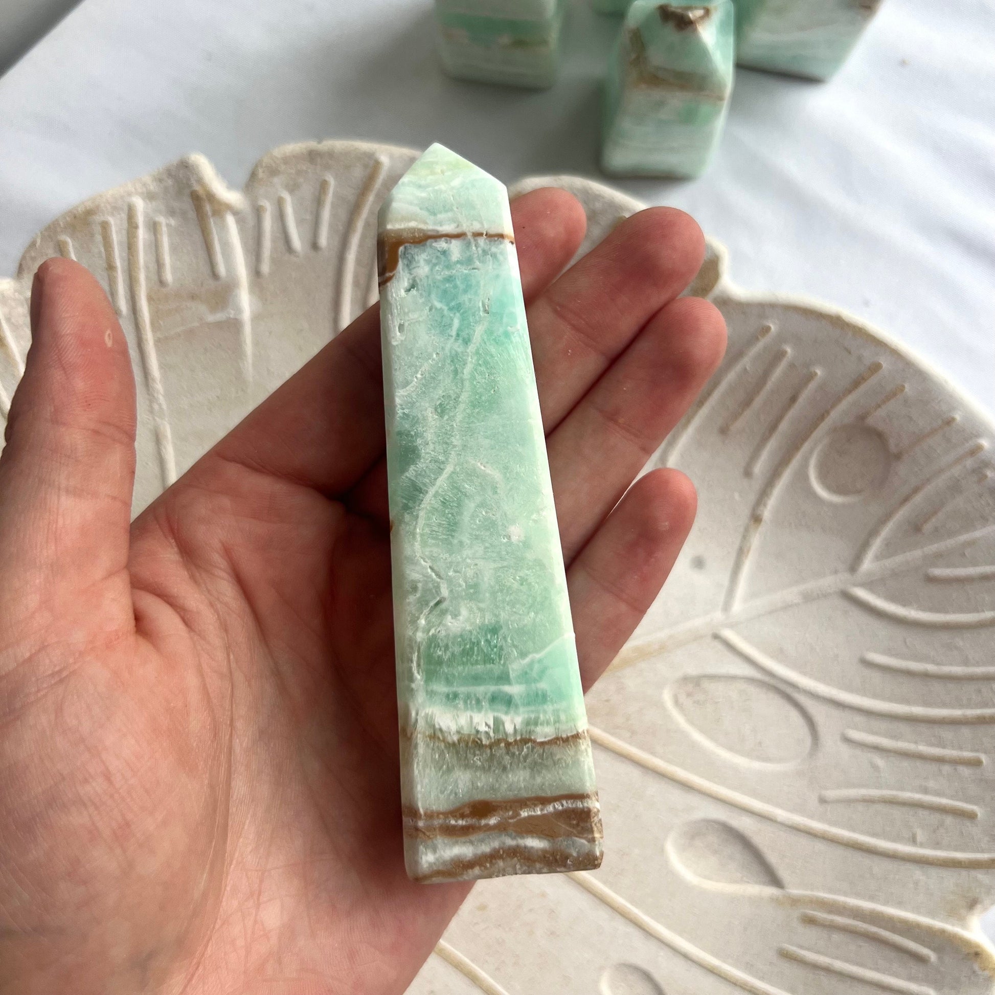 Listing is for this exact Caribbean Calcite tower pictured, measuring approximately 4.5” and weighing 5oz. Sourced and hand carved directly from Pakistan. 🤍🌊
