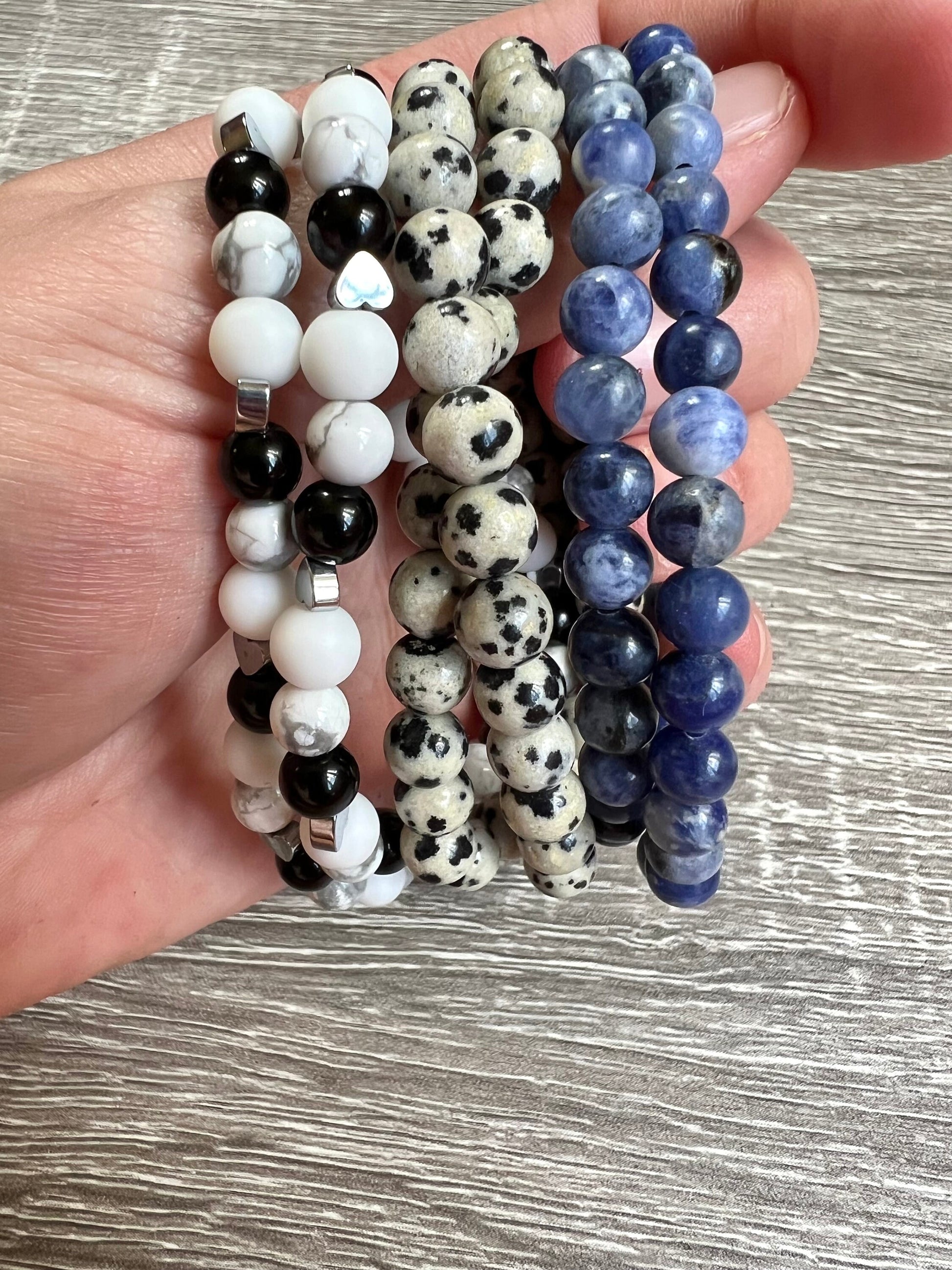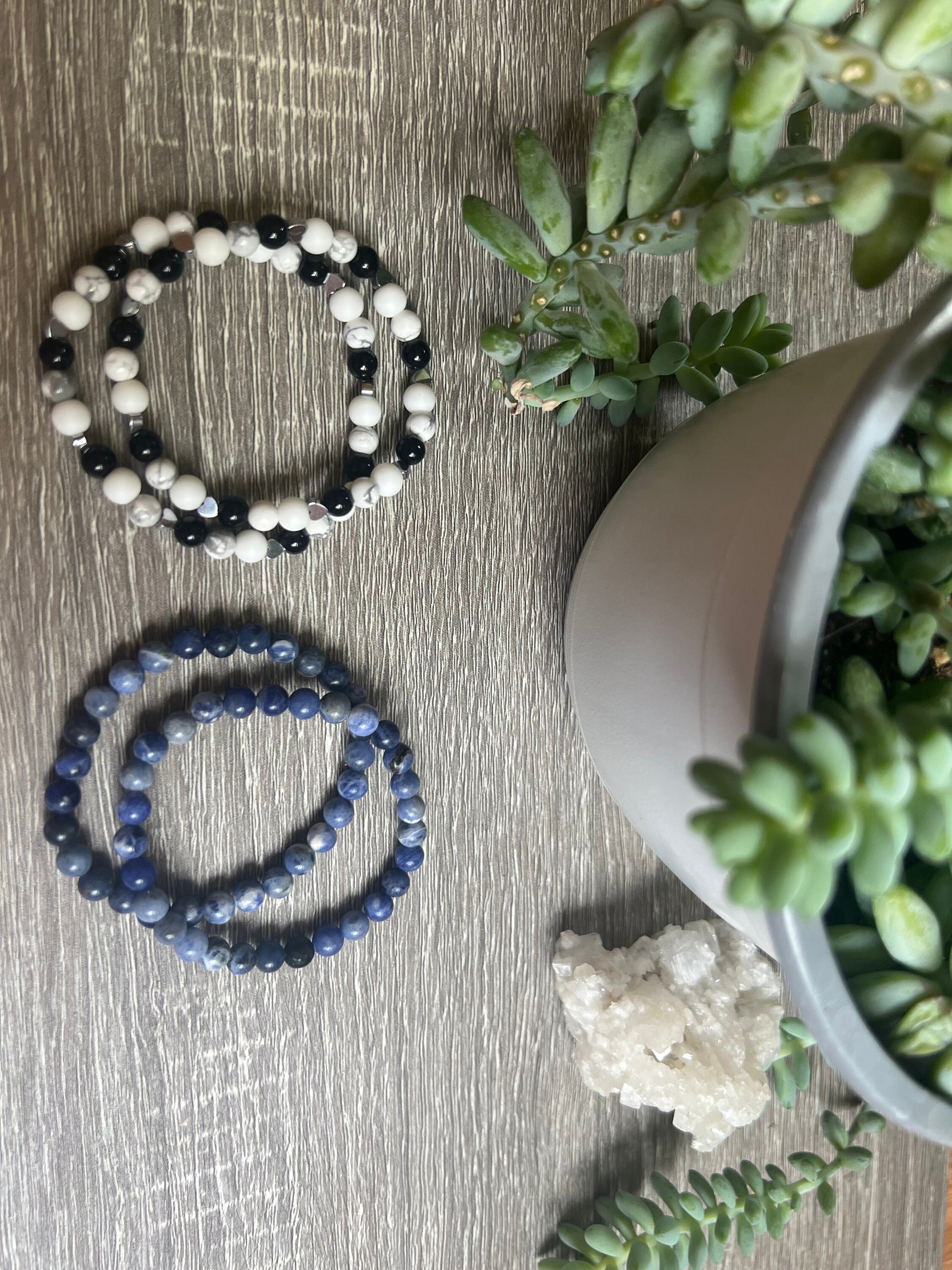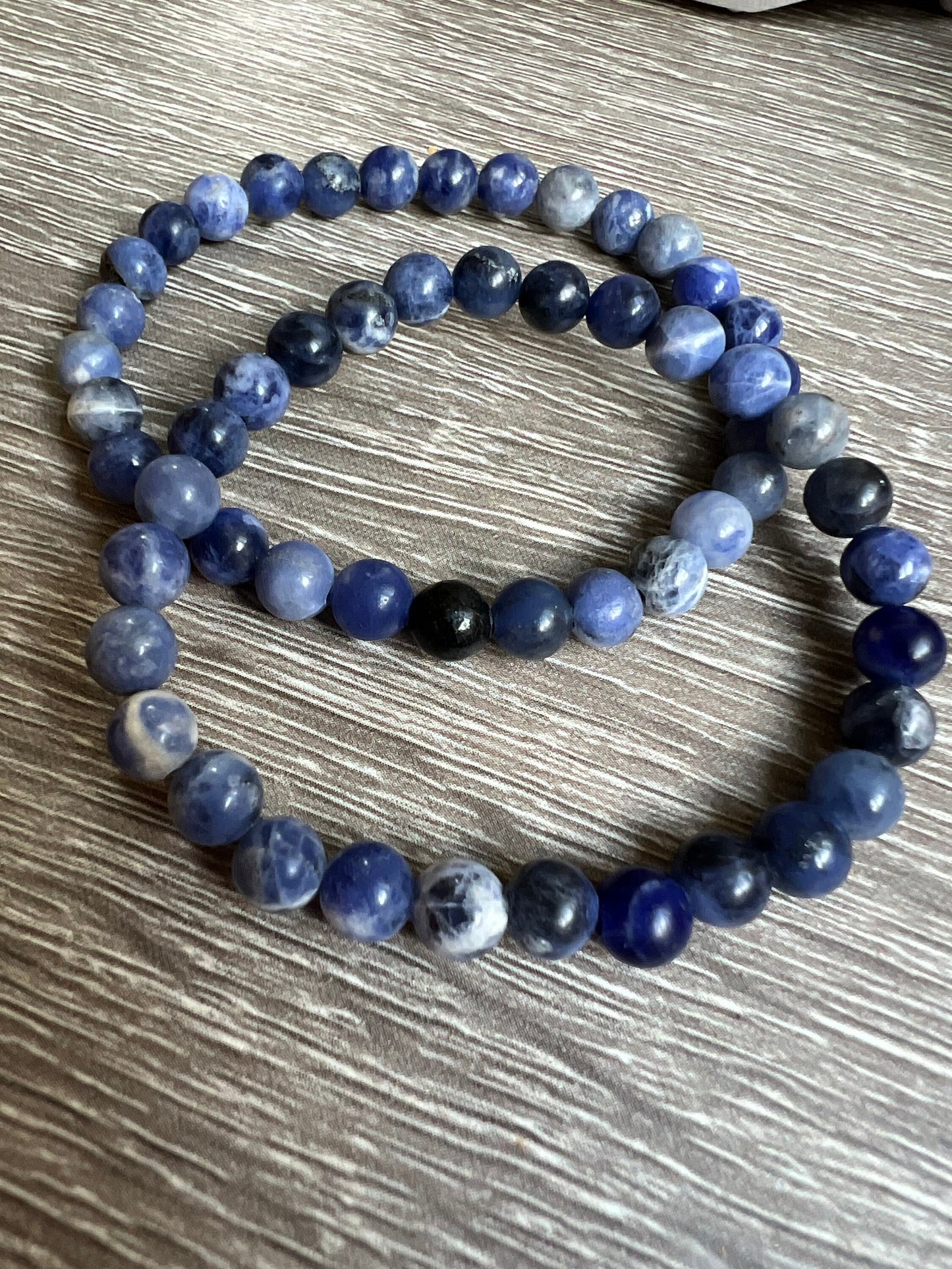 Genuine blue sodalite beaded bracelet handmade with 6mm natural gemstone beads, made to fit 7inch wrist but if certain size is needed please feel free to send me a message so I can accomodate π