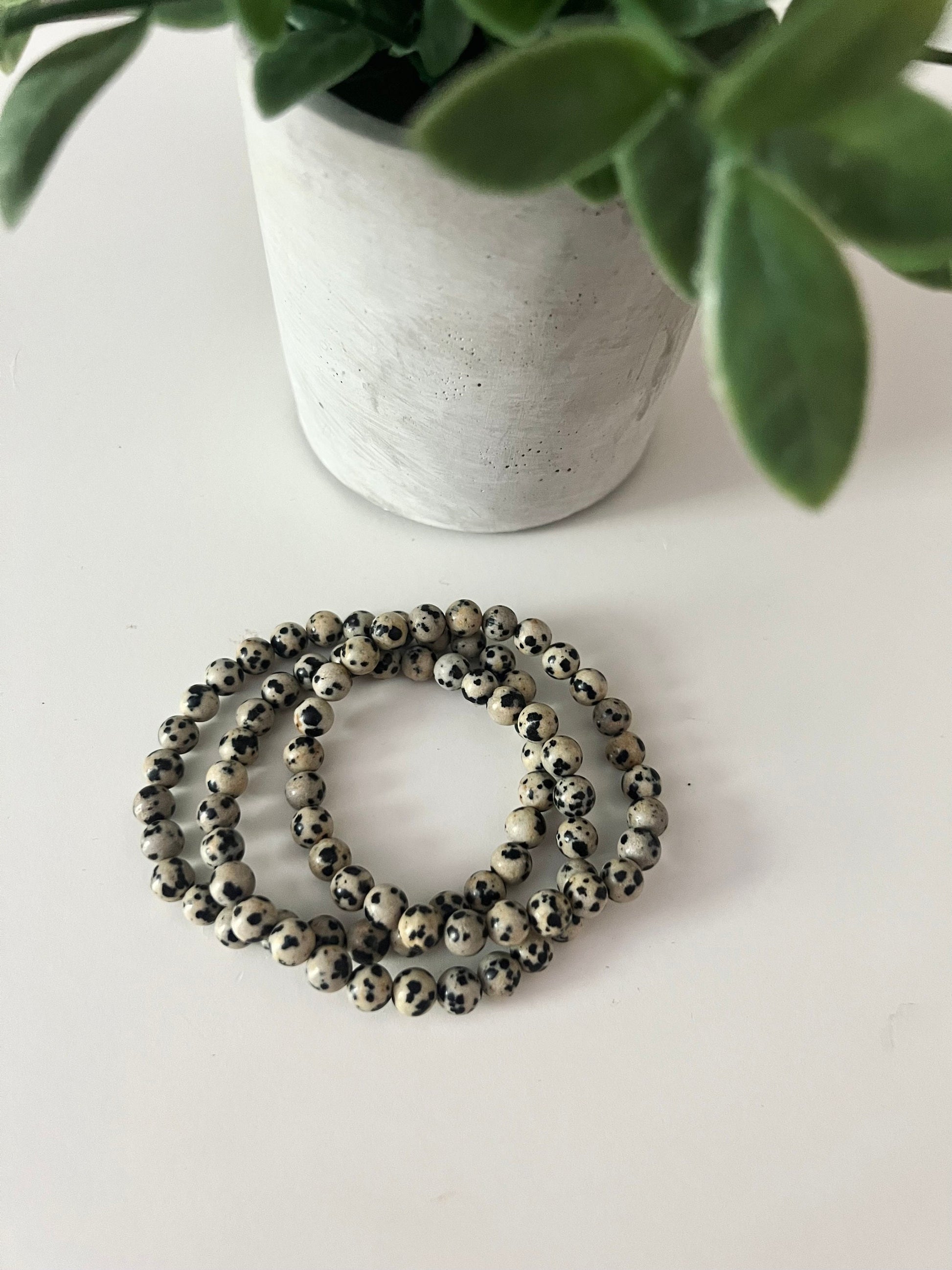 Dalmatian Jasper Gemstone beaded Bracelet with 6mm all natural gemstone beads, handmade with love 💗