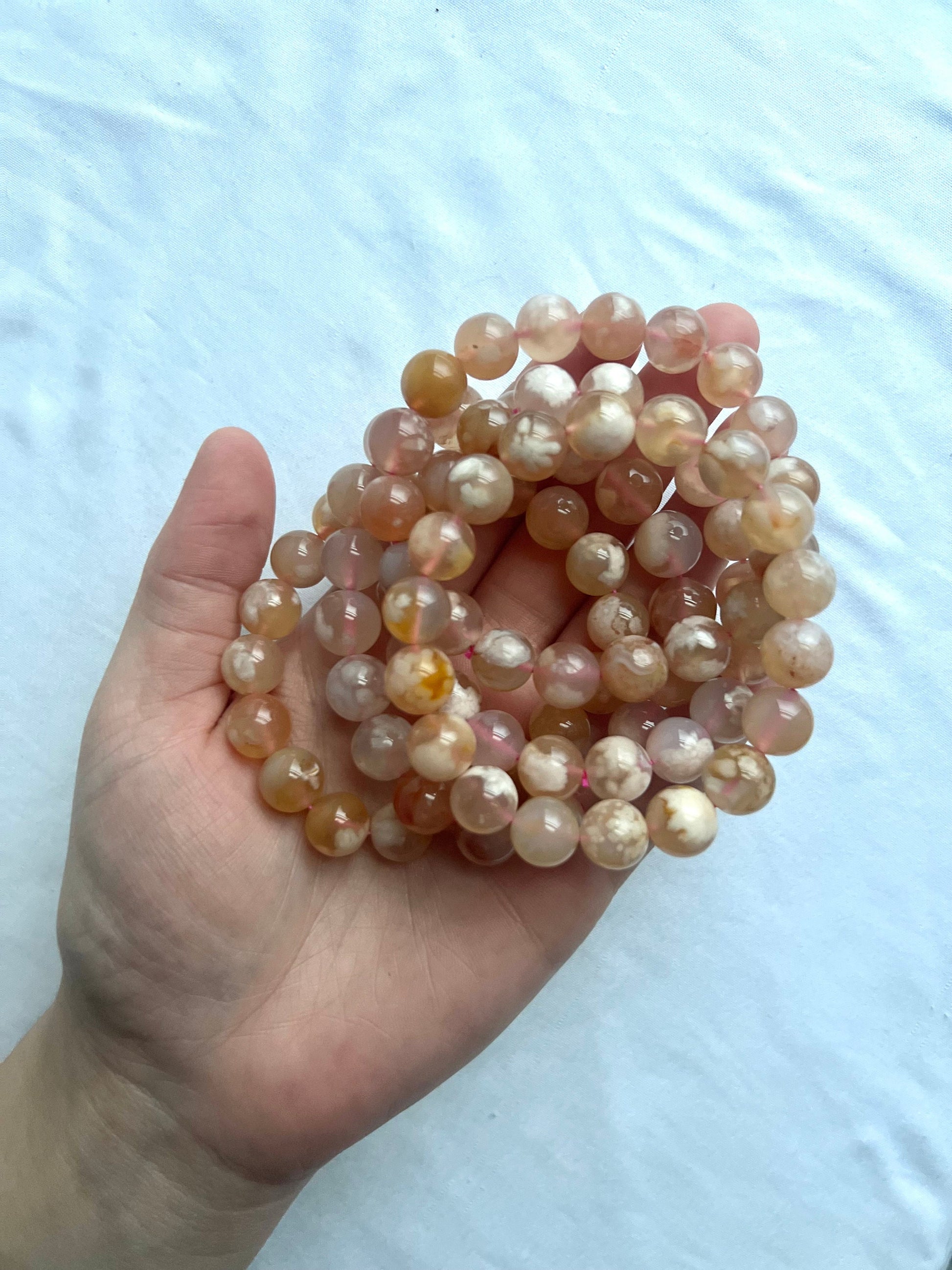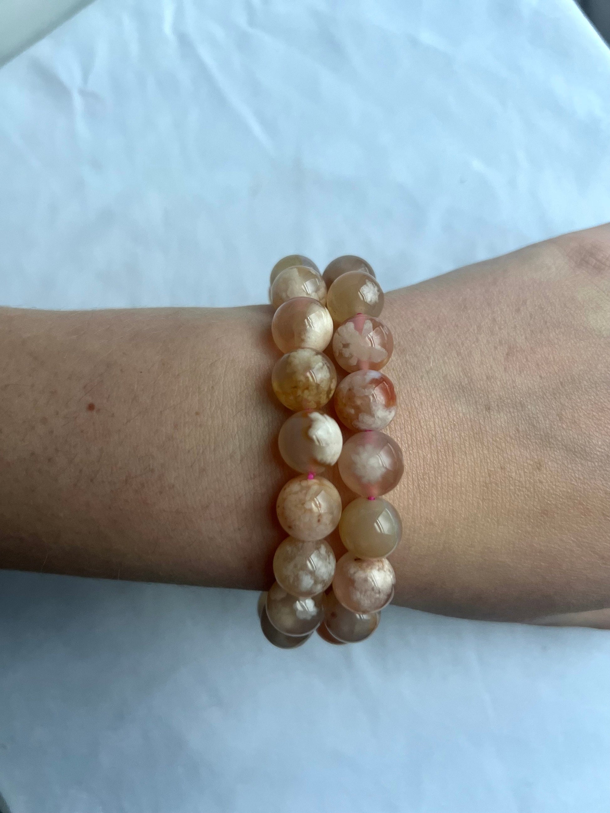 Flower Agate Handmade Bracelet | 11mm Flower Agate Beaded Bracelet