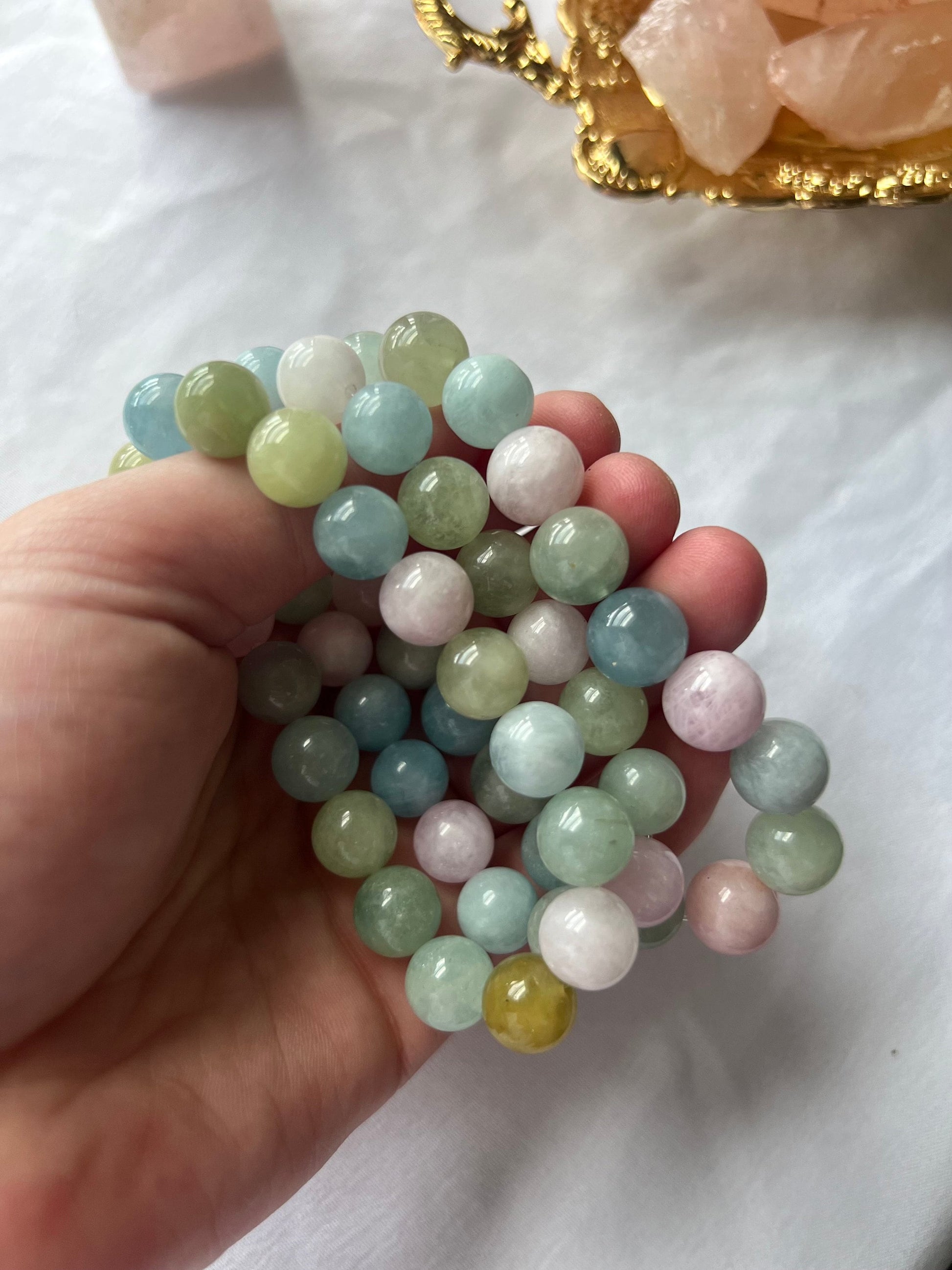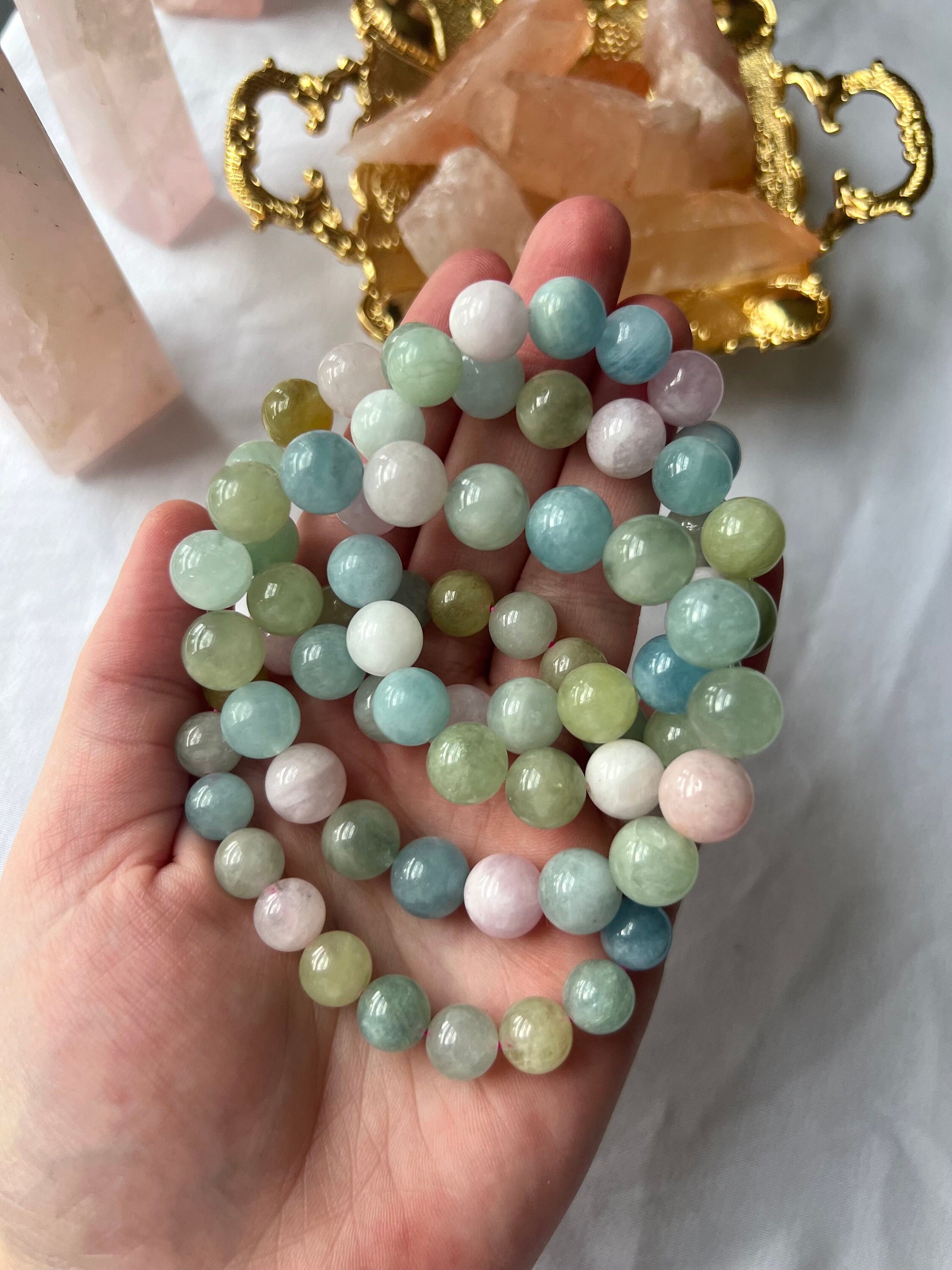 Morganite Bracelets 10mm, 11mm Gemstone Bracelets Healing Crystals Gift for Crystal Lover