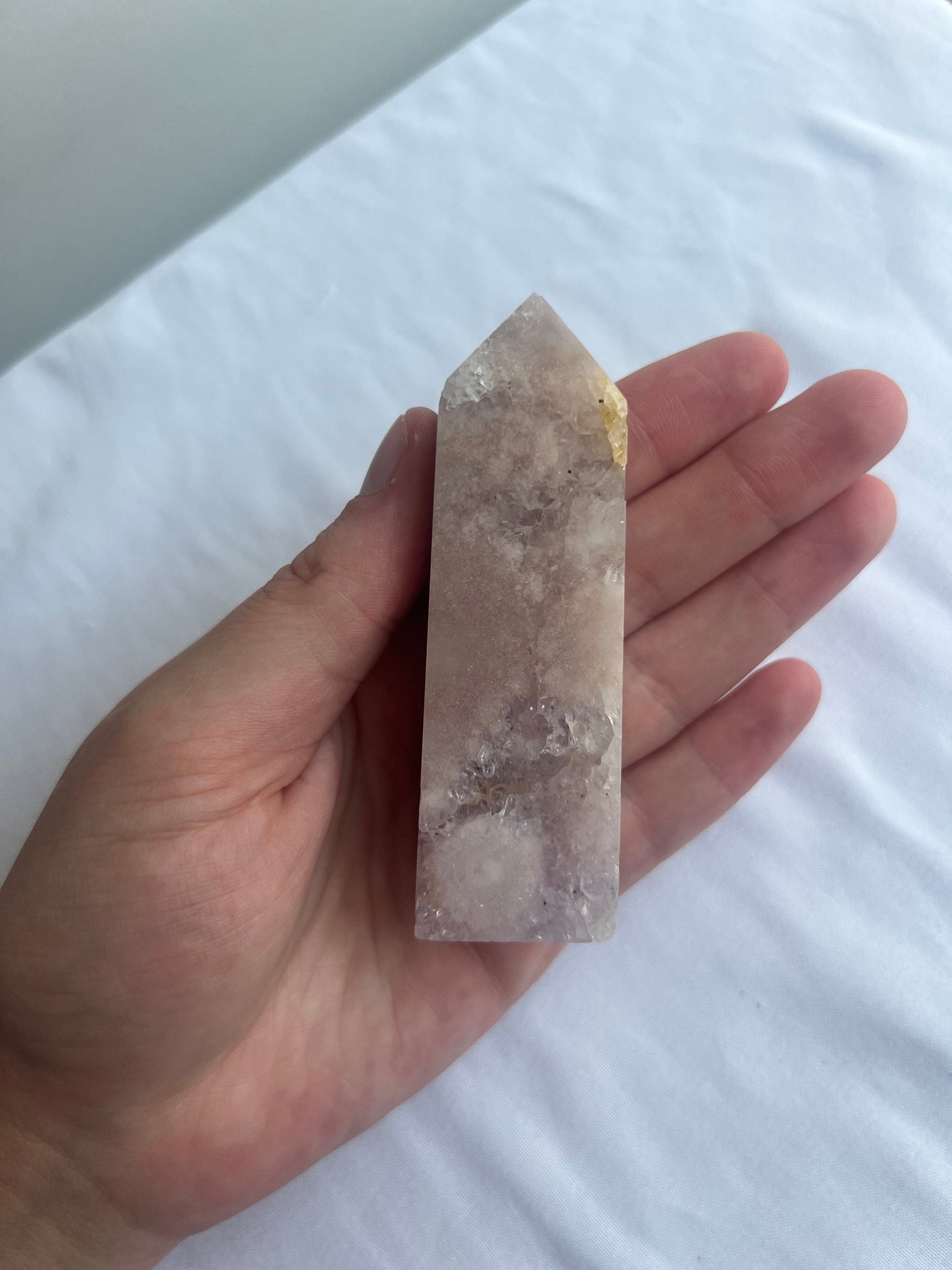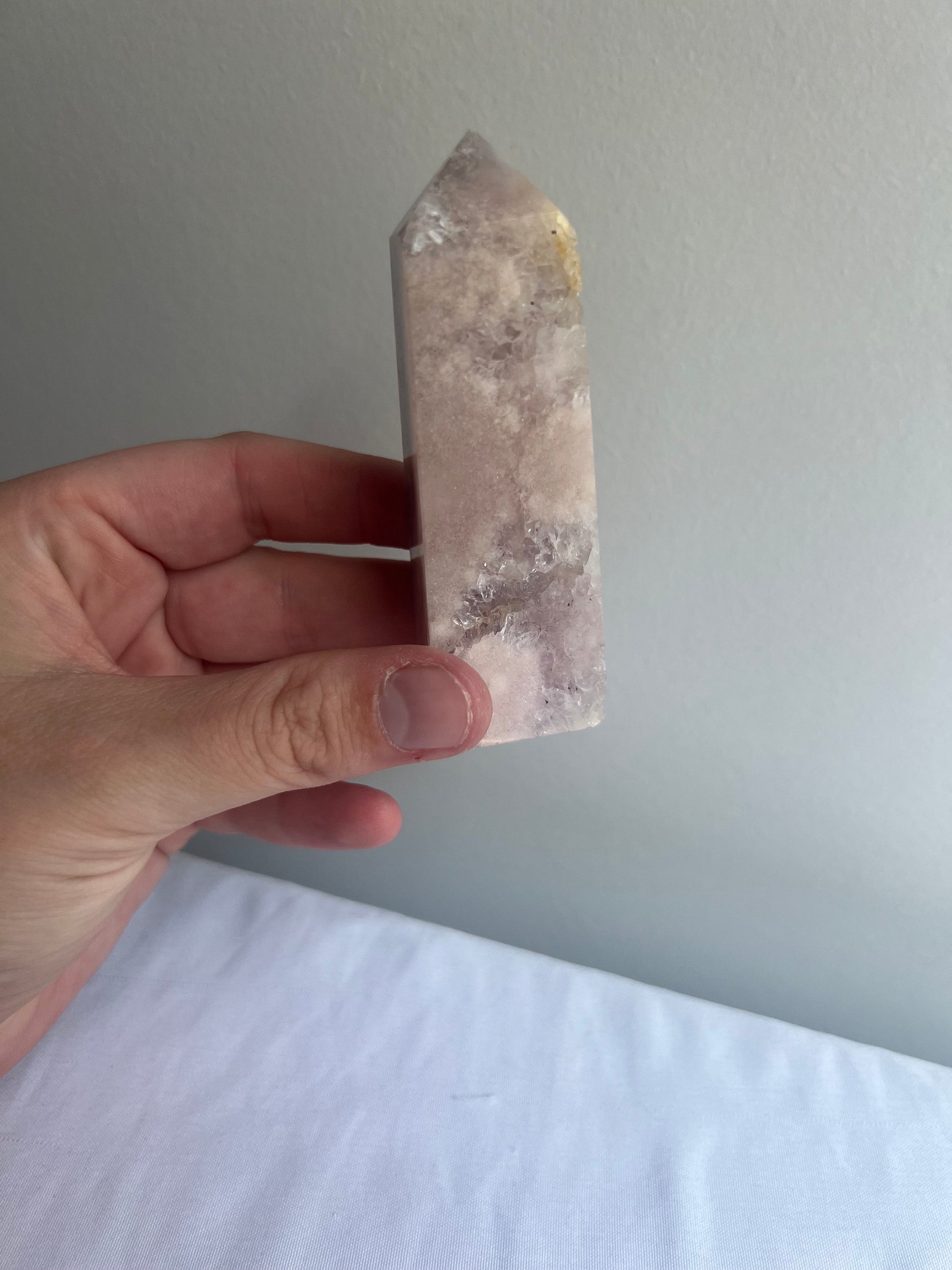 Pink Amethyst has only been recently discovered, and only been found in one mine in Brazil, which makes it quite rare. This tower includes a combination of Flower Agate aswell which makes her EXTRA special 🌸✨