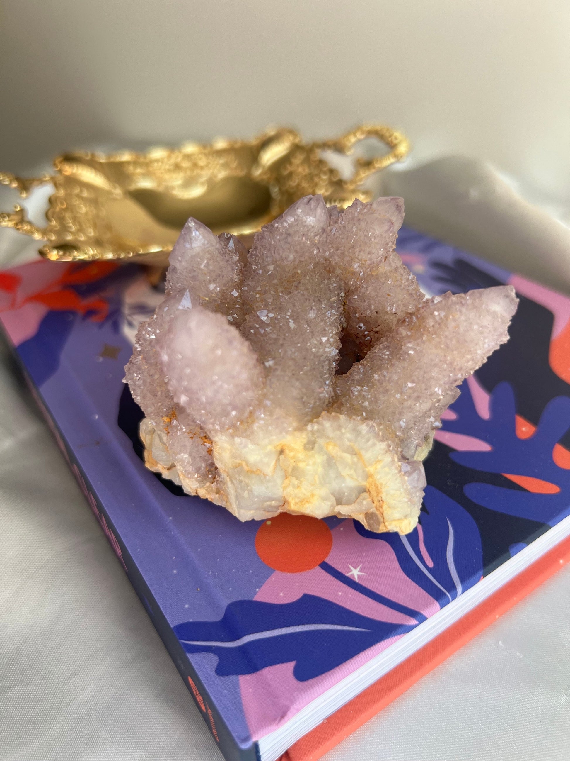 Listing is for this exact Cactus Quartz also known as Spirit Amethyst cluster. It is made up of a main gemstone (either quartz, amethyst, citrine) with smaller crystals growing overtop.