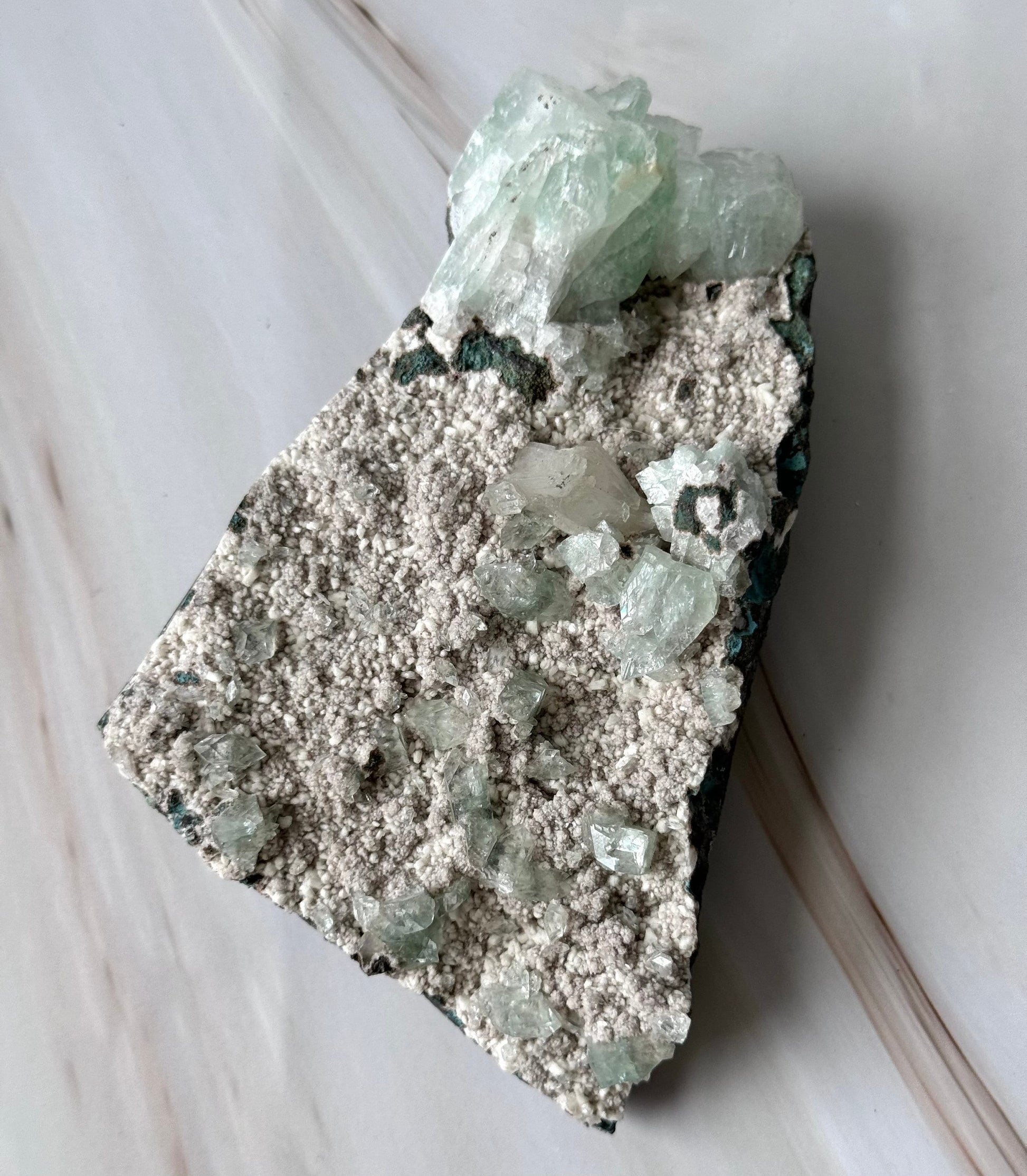 Listing is for this exact Green Apophyllite specimen on Scolecite directly sourced from India✨Weighs 0.300kg (300g), and measures 10.5cm tall, 8cm wide and 3cm thick.