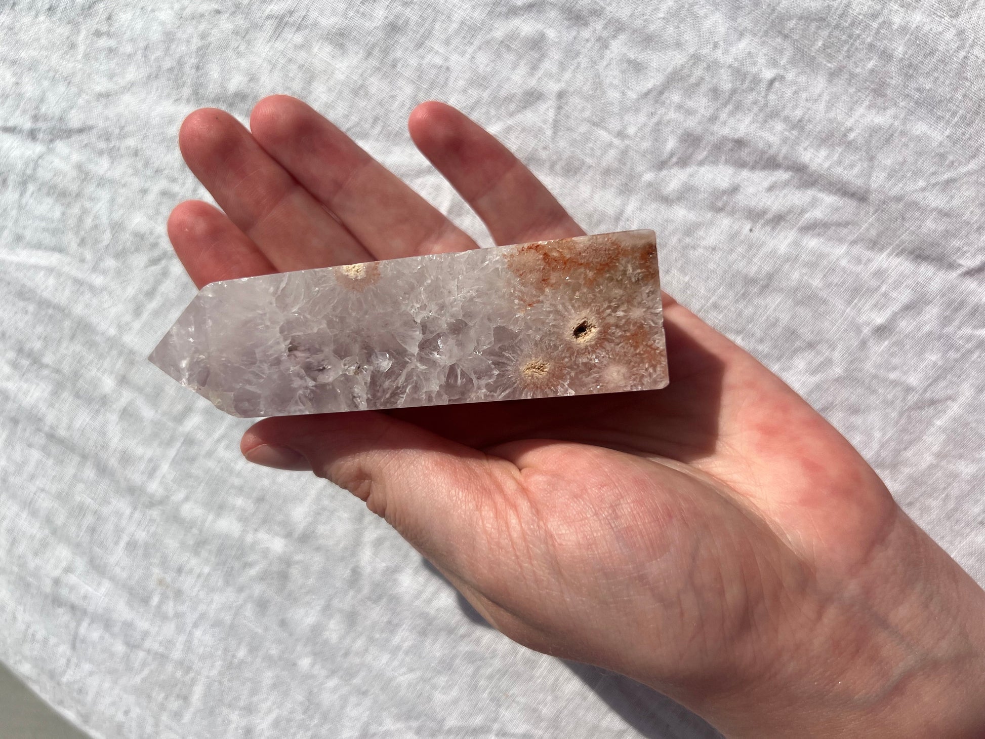 This Pink Flower Amethyst tower has a lilac color and measures approximately 4β. Buyer will receive the exact item listed. π