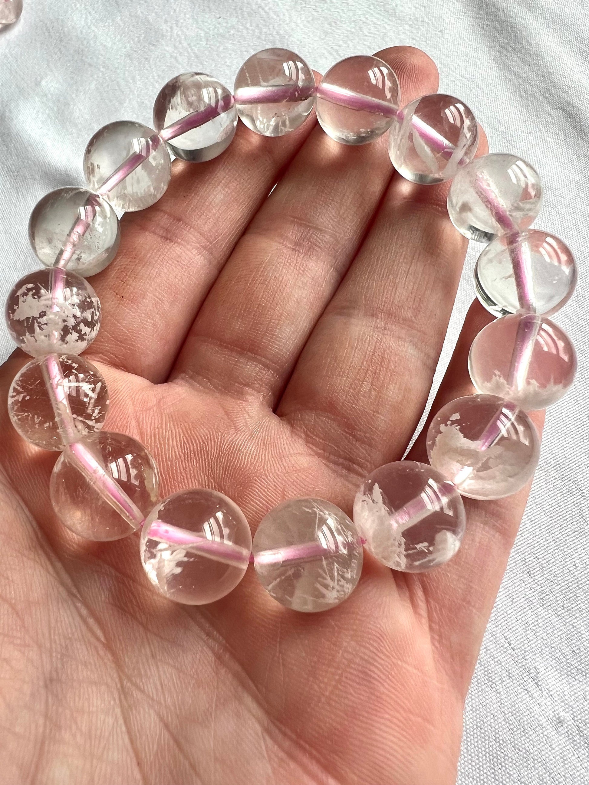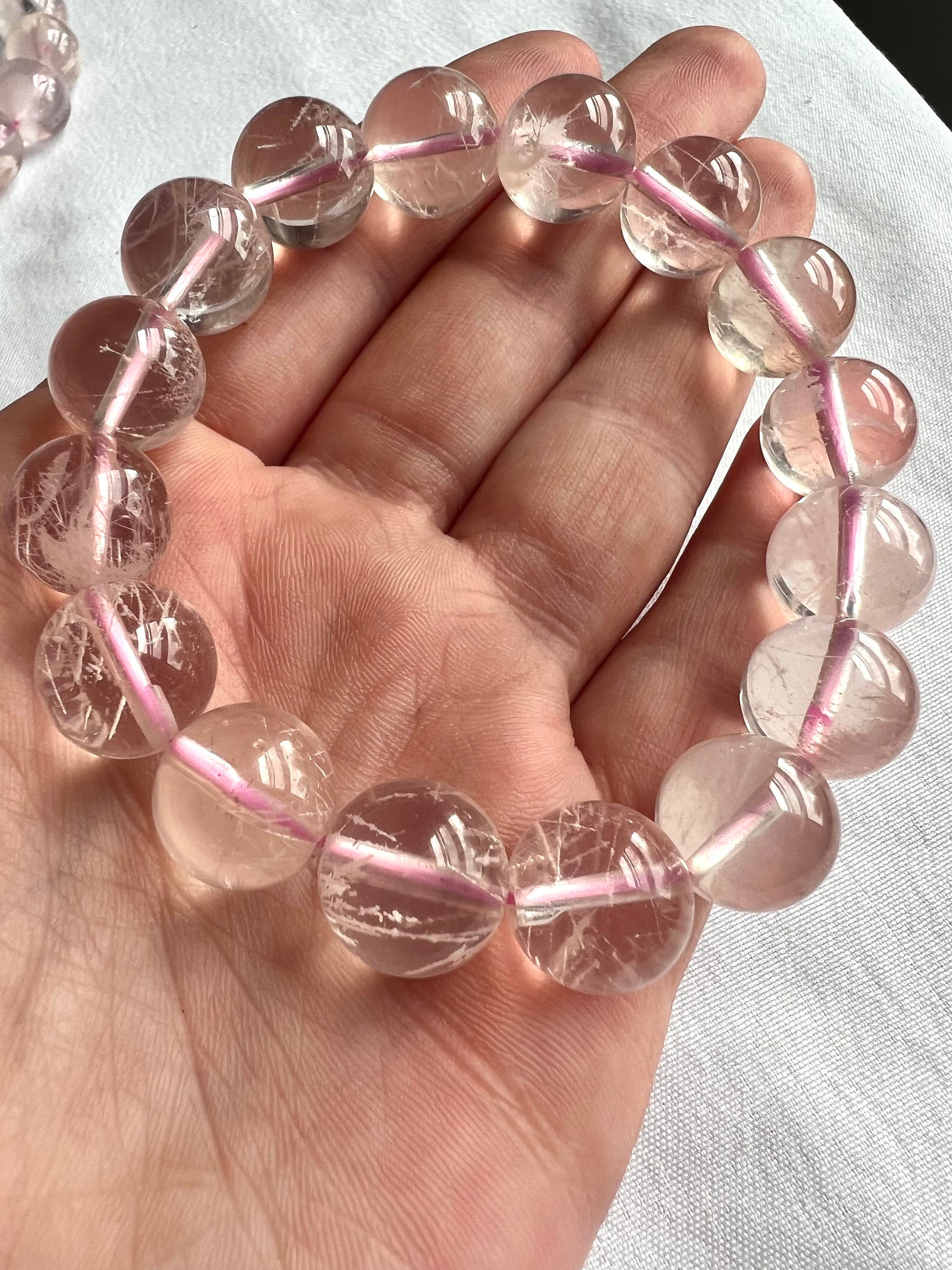 High quality Rose Quartz bracelets with garden inclusions, available in bead sizes 11mm, 12mm & 13mm. 💗✨