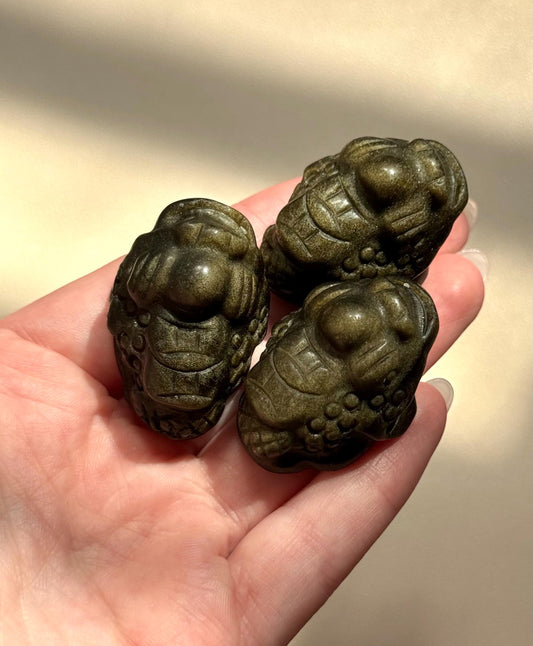 Beautiful Gold Sheen Obsidian Money Toad Carvings | Feng Shui Money Frog Obsidian